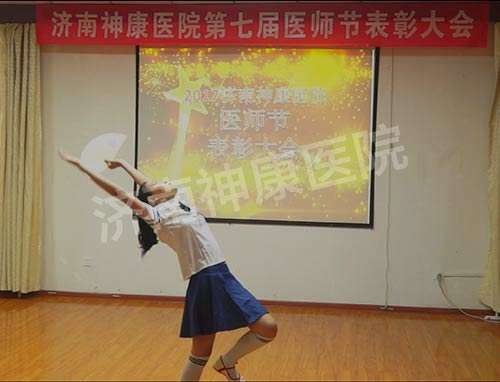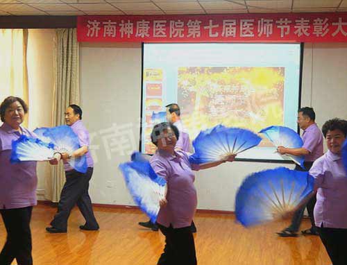 济南神康医院是全体神康人共同的家,在欢庆医师节的活动里,自然少不了家人的祝福,二区王大夫和她上小学的儿子一首诗朗诵《春天》,让我们在夏日里依然回味到春的美丽;复诊室廖大夫女儿的一曲《扇子舞》,使我们就想为神康第二代的多才多艺点赞。