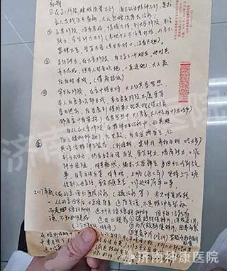 “感谢王教授和神康专家团队一起详细的为我女儿看诊,并给她制定了一套详细的治疗方案。”刚刚接受完专家会诊的宋女士家属激动的表示。家住济南的宋女士,今年32岁,患有精神分裂症5年之久,家人带其四处求医无果。“从网上看到王建勤教授来济会诊,虽然今天下着小雨,天气相对比较寒冷,我们天不亮就专门赶过来,我怕来看病的人比较多,特意把女儿的病情详细的写出来给王教授看,经过这次专家详细的会诊,信心满满,我们希望这次是为她治疗的终点站。”宋女士母亲说。